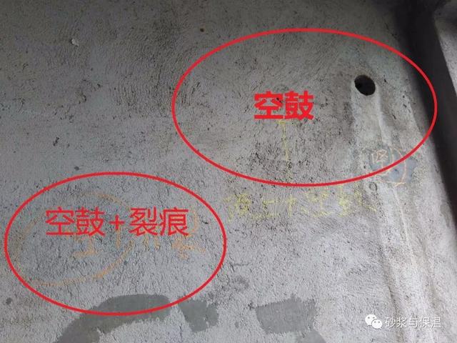 空鼓產生的原因主要有四個:一是基層墻體表面未處理。墻體表面黏著的塵土、殘余砂漿和澆筑時的隔離劑未清理干凈,光滑的混凝土表面未涂刷界面劑或進行噴漿拉毛,抹灰前未進行提前灑水充分潤濕等。二是墻體養(yǎng)護時間不夠就急于抹灰。墻體未進行充分變形就開始抹灰,基層與抹灰層收縮不一致導致空鼓。三是單層抹灰過厚。墻體平整度不好或有缺損時,沒有提前處理,抹灰時急于求成,一次成活,抹灰層過厚,造成其收縮應力大于砂漿黏結力,產生空鼓。四是抹灰材料使用不當。抹灰砂漿強度與基層墻體強度不匹配,收縮率相差過大[2]。